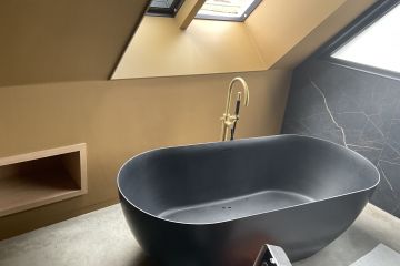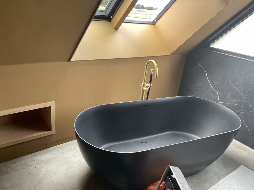 Levering en montage van beide designbadkamers, compleet met luxe sanitair, inbouwkranen, RVS-afwerkingen en maatwerkdouchewanden.