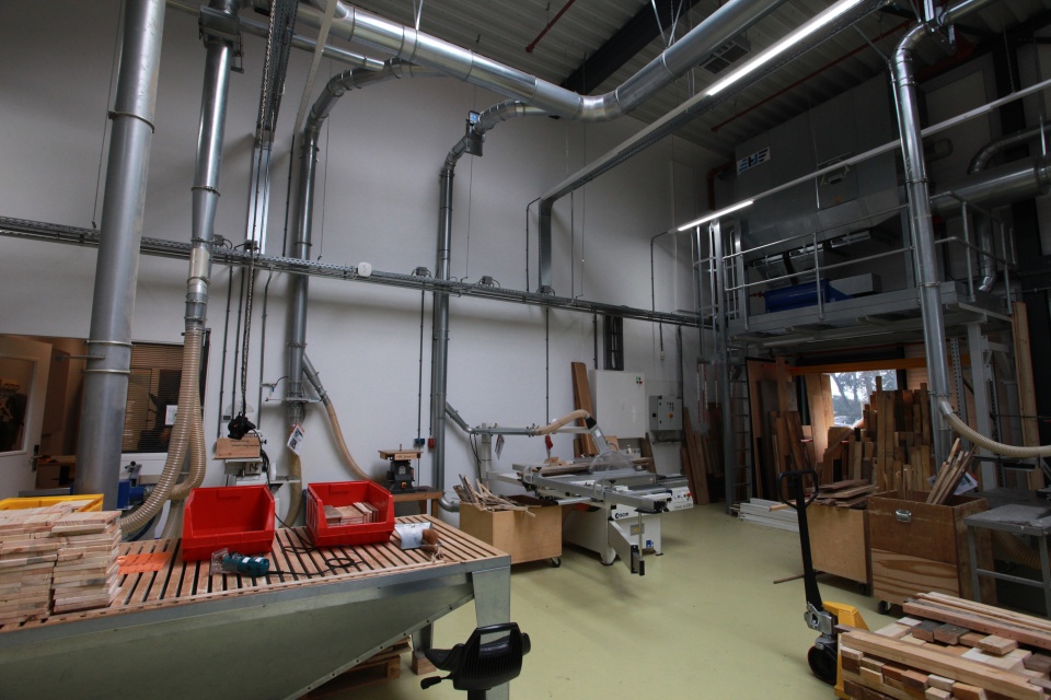 Er is een centraal afzuigsysteem toegepast in combinatie met ventilatieroosters boven een aantal ramen. Dit systeem zorgt voor de geruisloze afzuiging van lucht uit de leslokalen, specifieke ruimten zoals toiletten, e.d.. De werkplaatsen hebben hun eigen centrale afzuigunit op het dak.